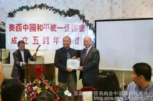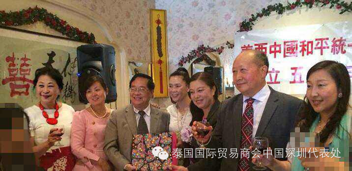 泰国国贸商会常务副主席,美国国际教科文基金总会常务副主席,泰美著名医疗慈善家妙嫦教授(带紫色胸花者)向本次大会慷慨捐助,代表两会向美西合同会表达了最真诚的祝福和支持!同时妙嫦教授应邀代表上述两会出席了此次大会,并向袁总领事及古会长馈赠了礼物,同时代表泰国国贸商会各位领导邀请美西会各位领袖在合适的的时候访问泰国。希望搭建泰国-美国人民之间的友好交流平台。促进两国之间的友好交往!