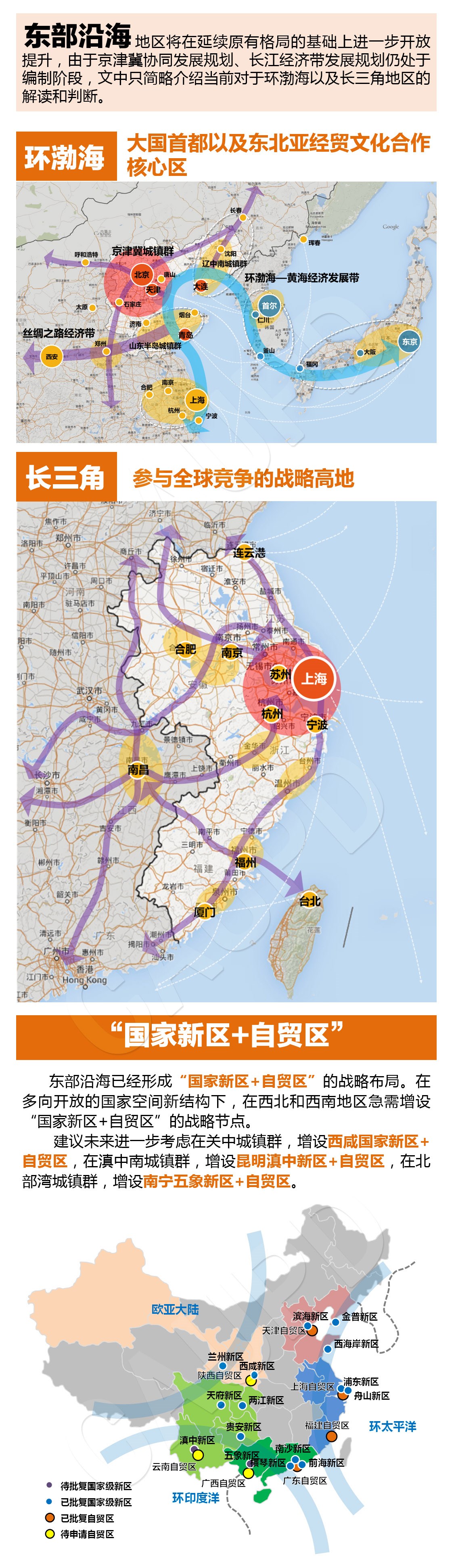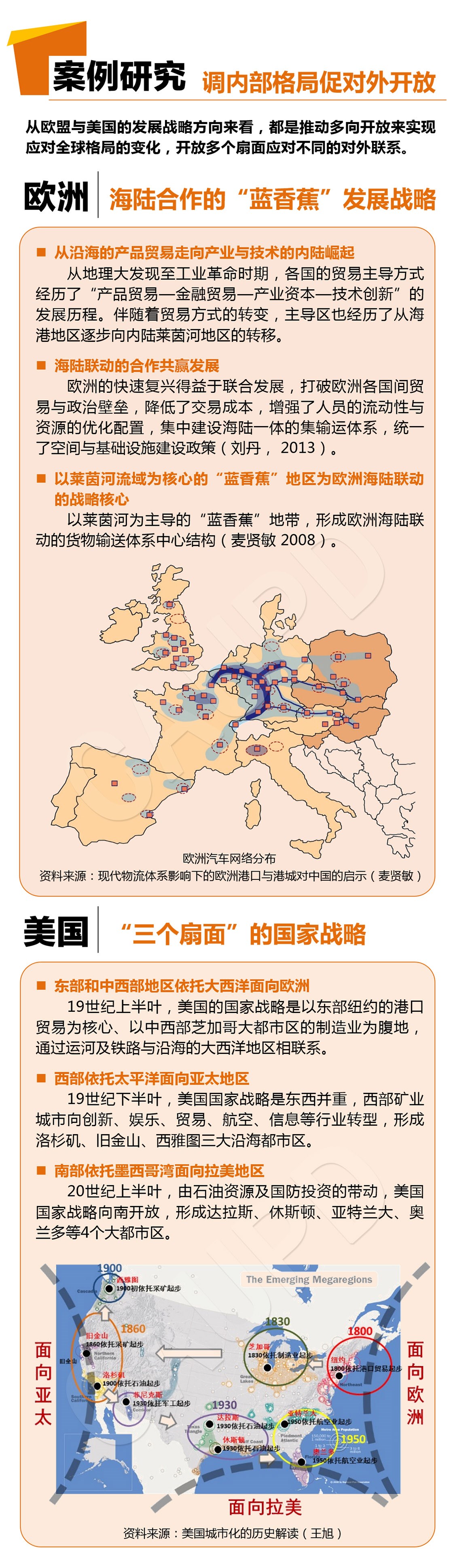 “一带一路”战略谋划世界中的中国,更在重塑中国面向的世界。我们基于发达国家已有空间战略的案例研究,聚焦国内全域格局发展,试图建构“一带一路”战略下我国的整体空间框架,通过提出各区域的战略举措,促进国内空间战略调整、自贸区政策区建设,构筑中国自主的全球贸易体系。本文中的结论仅供学术交流。研究工作仍在深入当中,未来可能对上述结论和观点予以优化与调整。